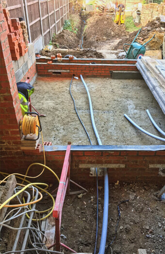We perform compliant trenching and install electrical-grade conduit for underground mains cabling, including proper backfill, warning tape, and compaction as required.